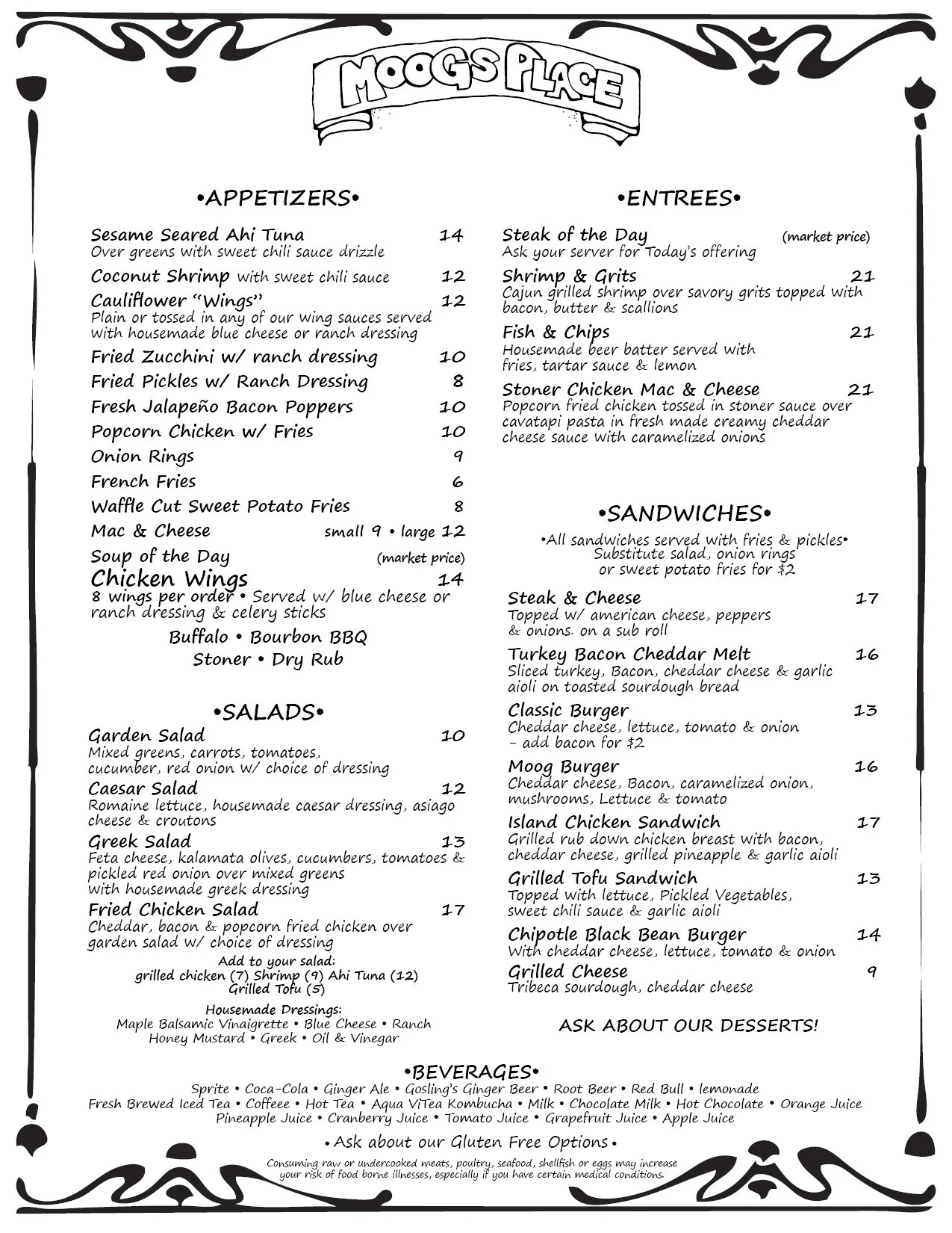 (Full Dinner menu available until 9pm and snacks and late night fare until closing)